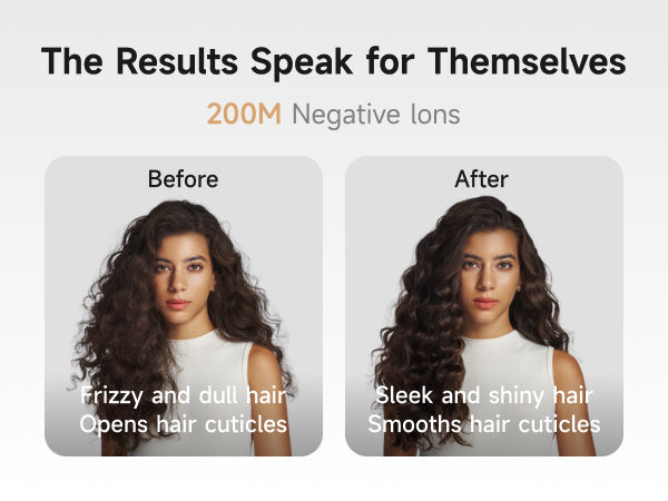 - [200M Negative Ions] Emits 200M negative ions while drying, fending off frizz and flyaways from the source. The ions also break down water molecules faster, reducing drying time and heat exposure.